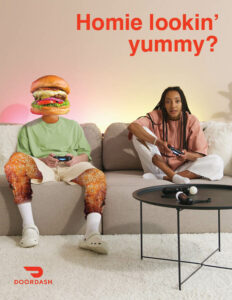 Inspired by cartoon characters transforming into comically sized chicken legs when someone’s hungry, this campaign would show the reliability of the service, having witty headlines like the one shown here. Other ideas for these include ‘Bestie lookin’ tasty?’ and ‘Chum lookin’ yum?’.